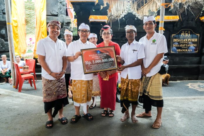 Ketua Panitia Karya Putu Eka Sujaya melaporkan, pelaksanaan Karya Mamungkah, Melaspas, Mendem Pedagingan, Padudusan Agung Menawa Ratna Mapeselang, Ngusaba Desa dan Ngusaba Nini Medasar Tawur Balik Sumpah Utama Desa Adat Lambing sudah bisa dilaksanakan dengan semangat gotong royong oleh krama Desa Adat Lambing Sibangkaja. “Tentu ini tidak bisa terlepas dari Pemkab Badung yang sudah memberikan bantuan hibah sebesar Rp. 2 miliar. Sekali lagi kami atas nama krama Desa Adat Lambing mengucapkan terima kasih kepada Bapak Bupati Badung, semoga diberikan keselamatan dalam memimpin dan menjalankan roda pemerintahan di Badung,” harapnya.BWN-HB